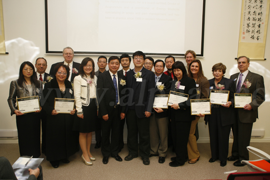 中領(lǐng)館梅建平參贊與首屆世界養(yǎng)生協(xié)會(huì)部分理事合影